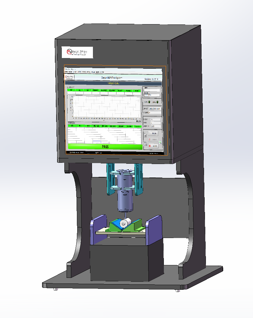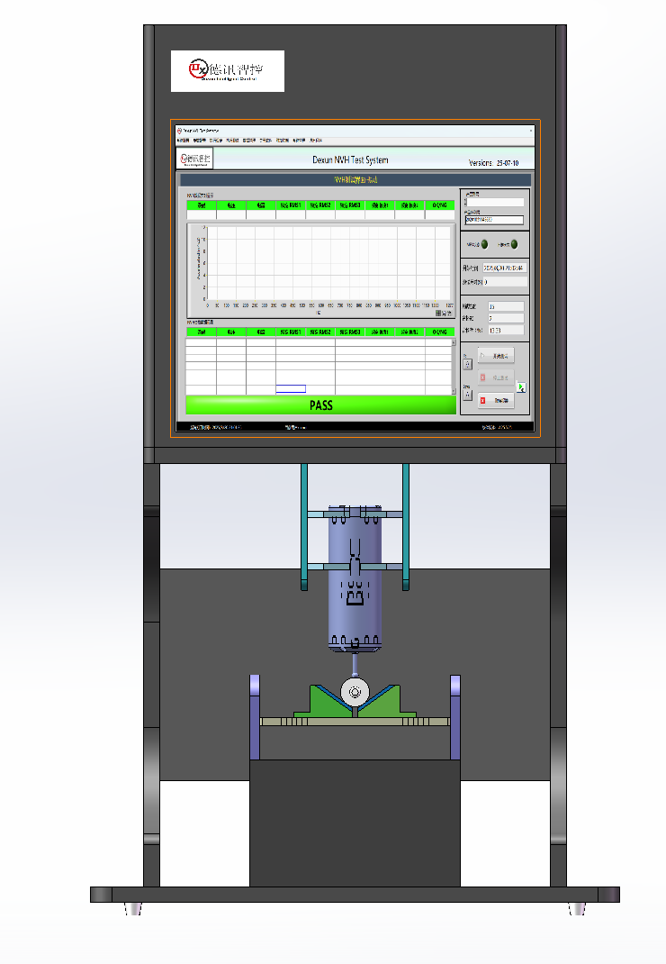 只有一个通道工作,通上电源,按上按钮,气缸自动将探头下滑接触夹在夹具上的电机。通过电机振动和产生噪音,探头采集各种物理数据显示在分析软件上,如:峰值,脉冲因子,加速度等。通过这些值可以分析电机的良品和不良品。